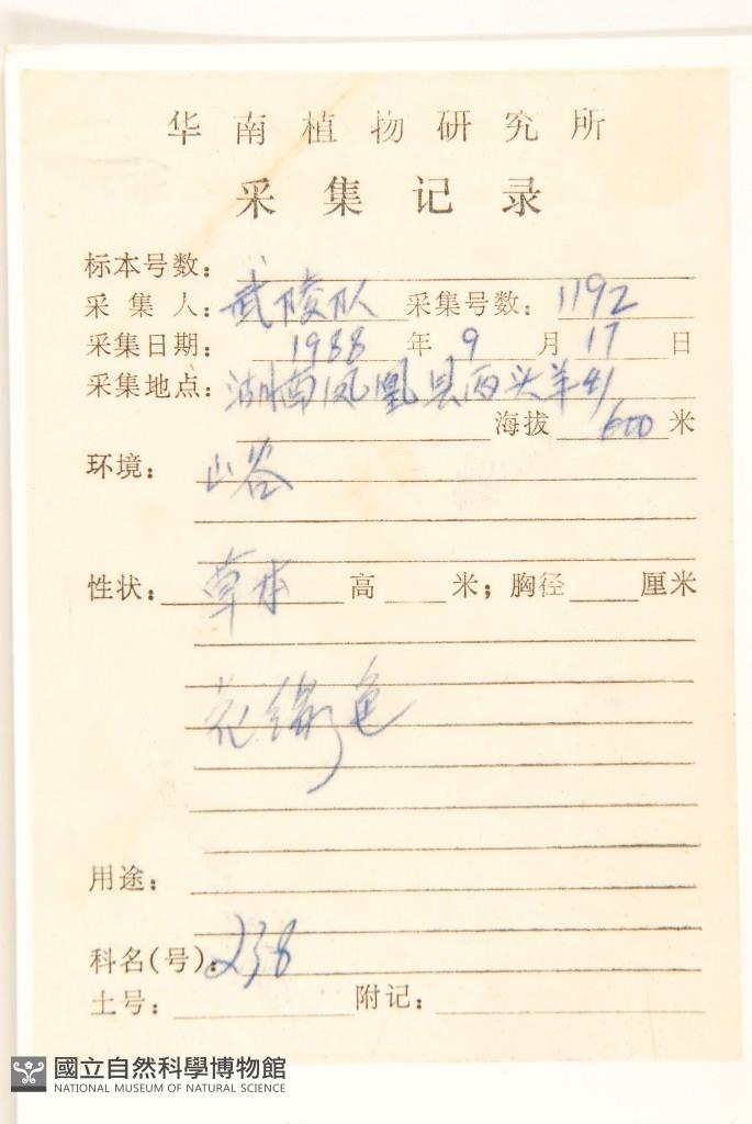 Collector's No.:武01192