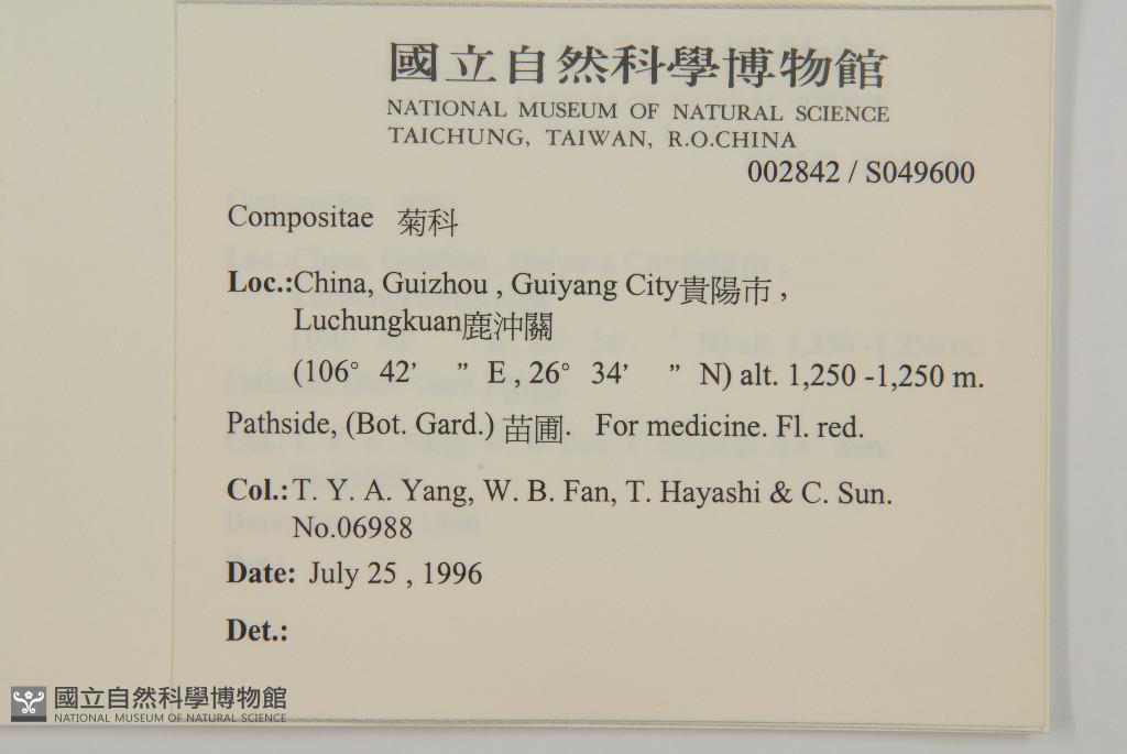 Collector:T. Y. A. Yang, W. B. Fan, T. Hayashi & C. Sun.