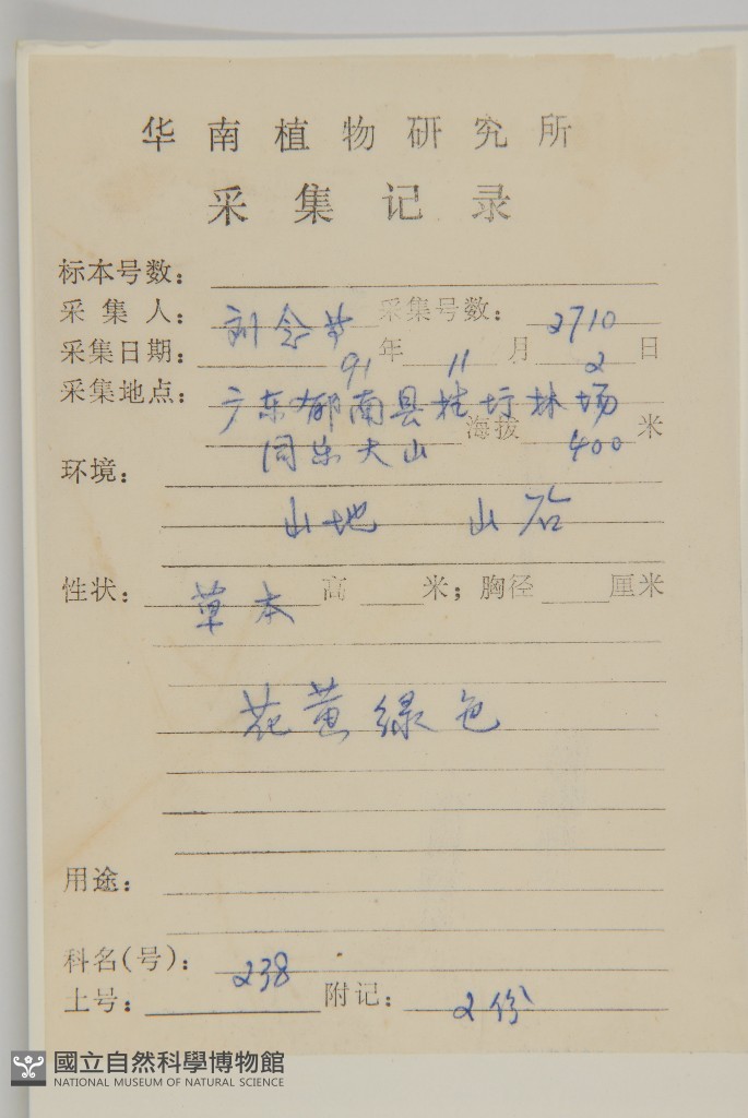 Collector's No.:劉?2710