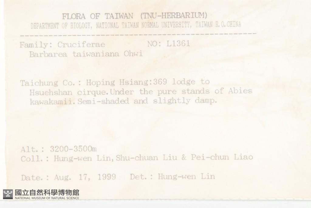 Scientific Name: Barbarea taiwaniana Ohwi