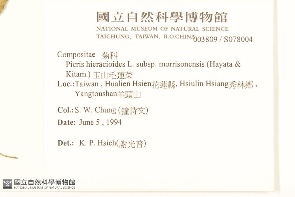 Scientific Name: Picris hieracioides L. subsp. morrisonensis (Hayata) Kitam.