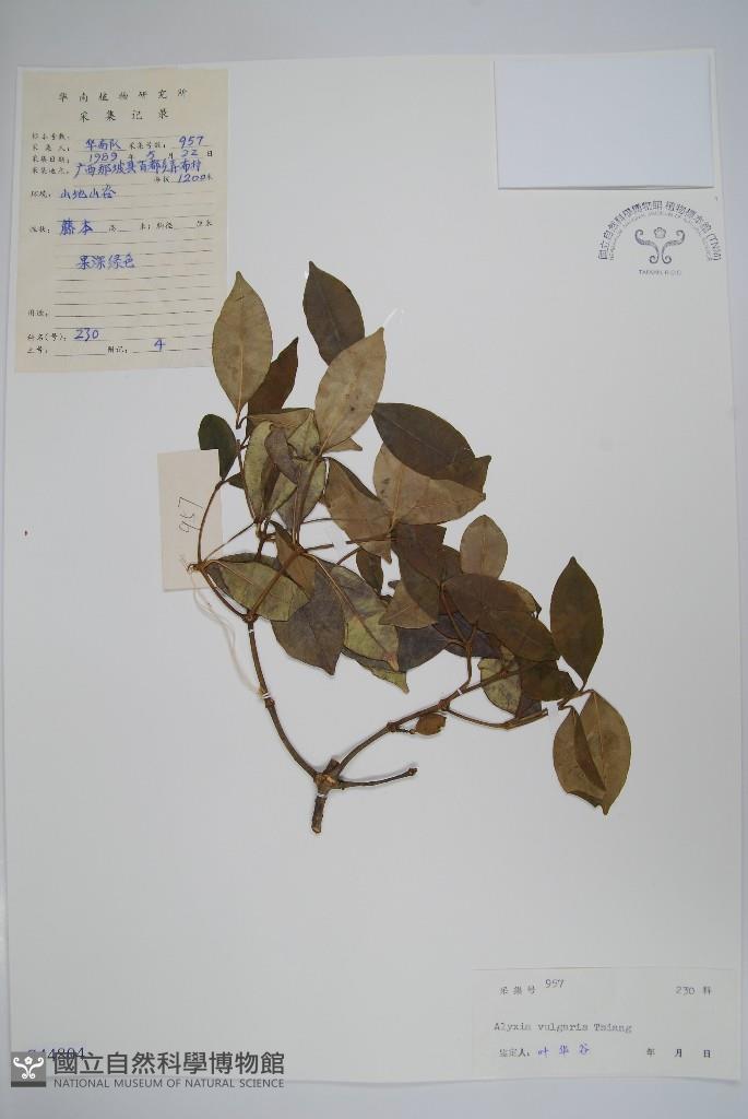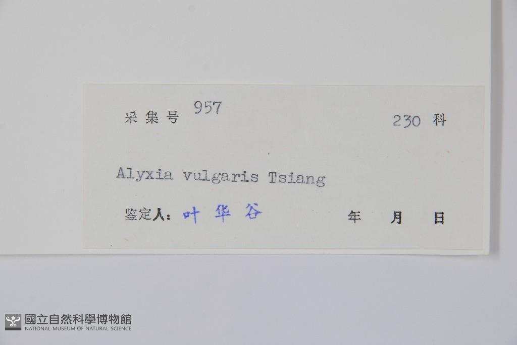 Scientific Name: Alyxia vulgaris Tsiang