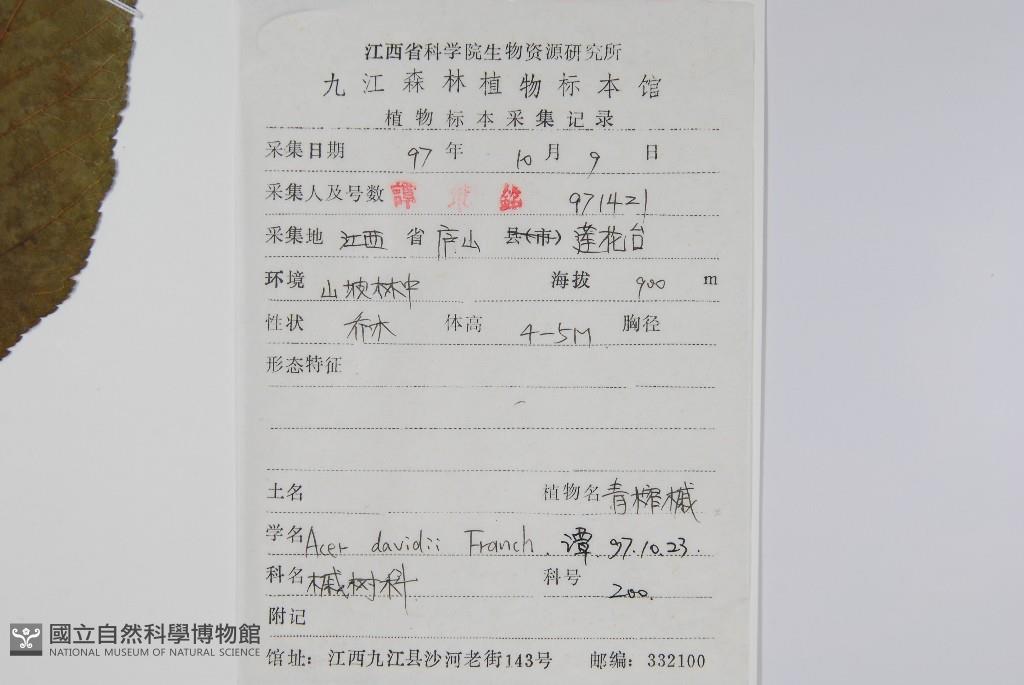 Scientific Name: Acer davidii Franch.