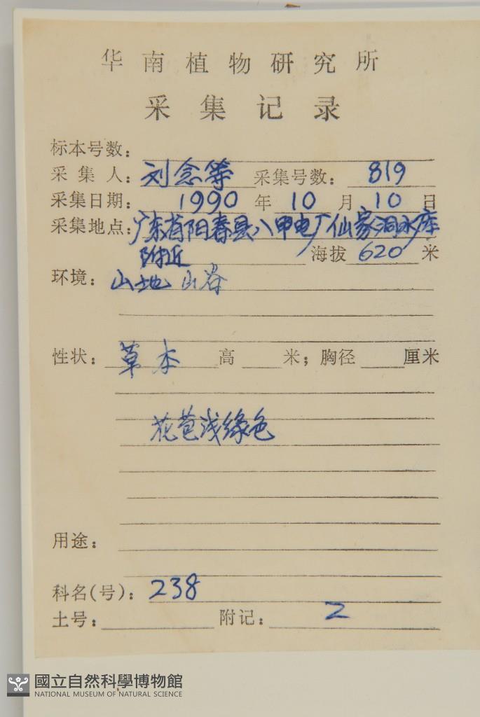 Collector's No.:劉?0819