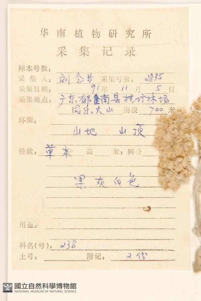 Collector's No.:劉?2835