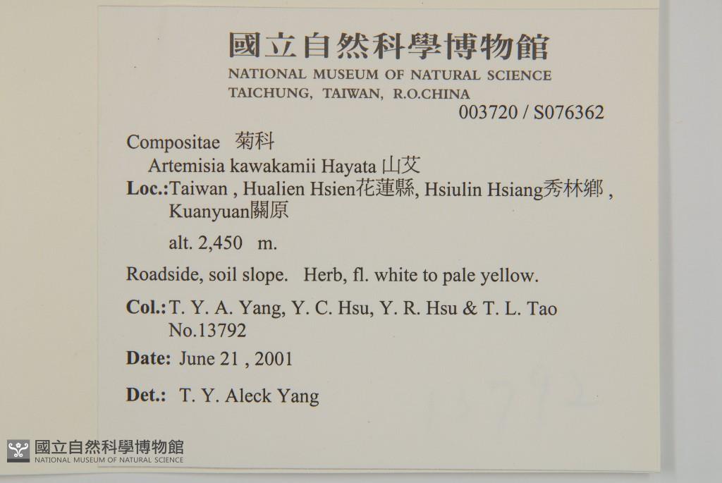 Collector:T. Y. A. Yang, Y. C. Hsu, Y. R. Hsu & T. L. Tao