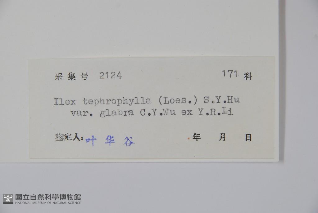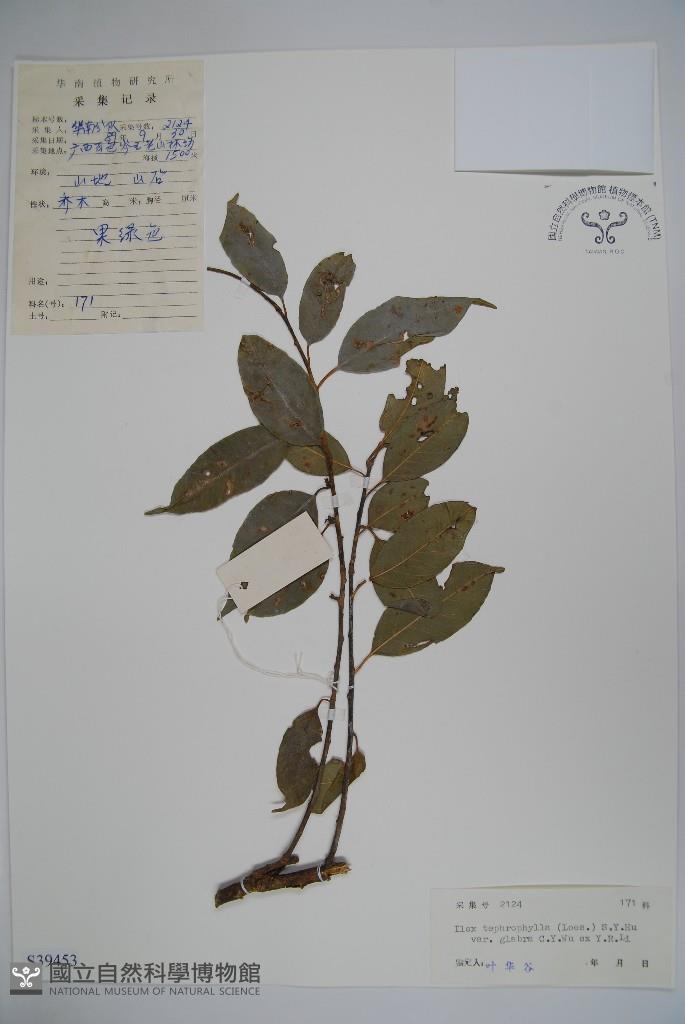 Scientific Name: Ilex tephrophylla (Loes.) S. Y. Hu var. glabra C. Y. Wu ex Y. R. Li