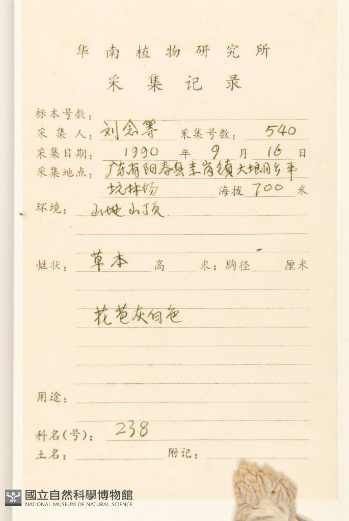 Collector's No.:劉?0540