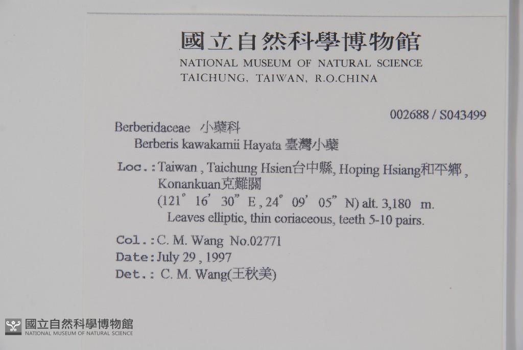 Scientific Name: Berberis kawakamii Hayata