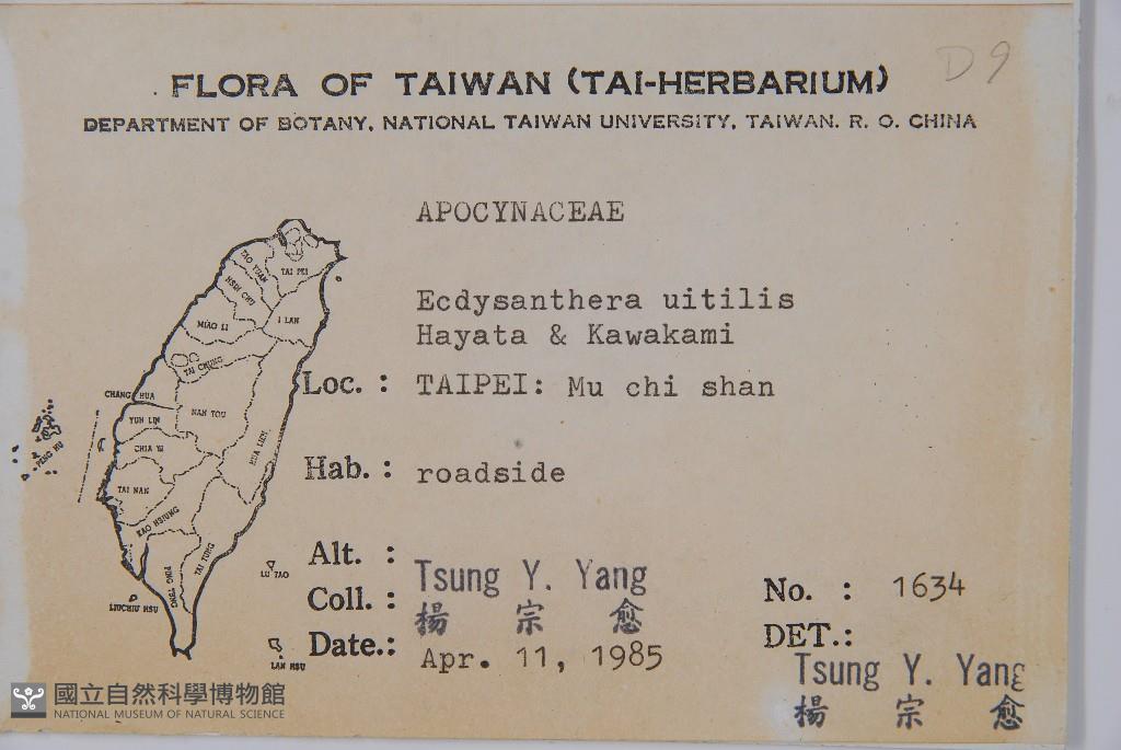 Scientific Name: Ecdysanthera utilis Hayata & Kawakami