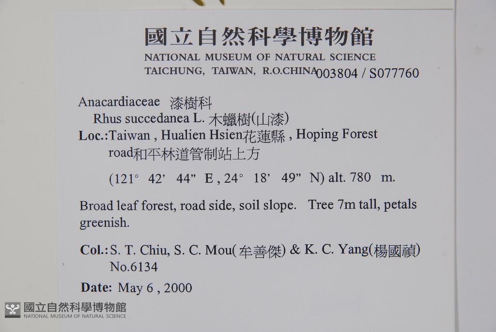 Collector:S. T. Chiu, S. C. Mou(牟善傑) & K. C. Yang(楊國禎)