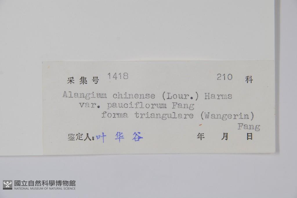 Scientific Name: Alangium chinense (Lour.) Harms var. pauciflorum Fang form. triangulare (Wangerin) Fang