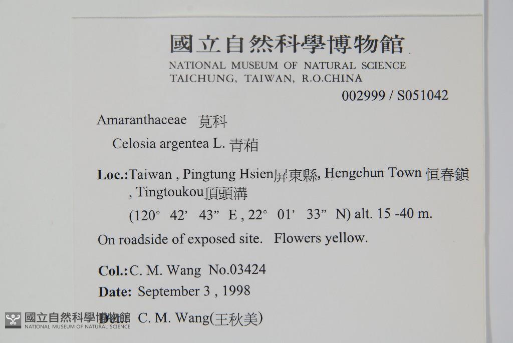 Scientific Name: Celosia argentea L.