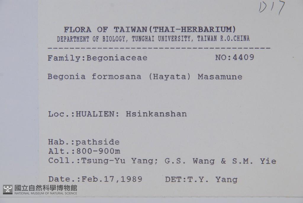 Scientific Name: Begonia formosana (Hayata) Masam.