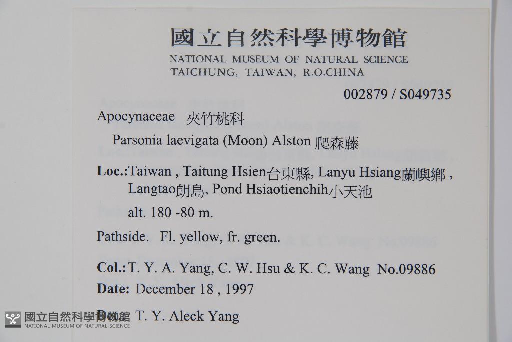 Collector:T. Y. A. Yang & K. C. Wang(王桂青)