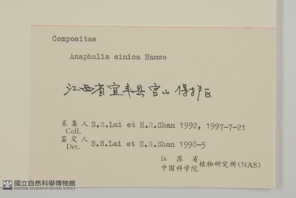 Collector:S. S. Lai & H. R. Shan