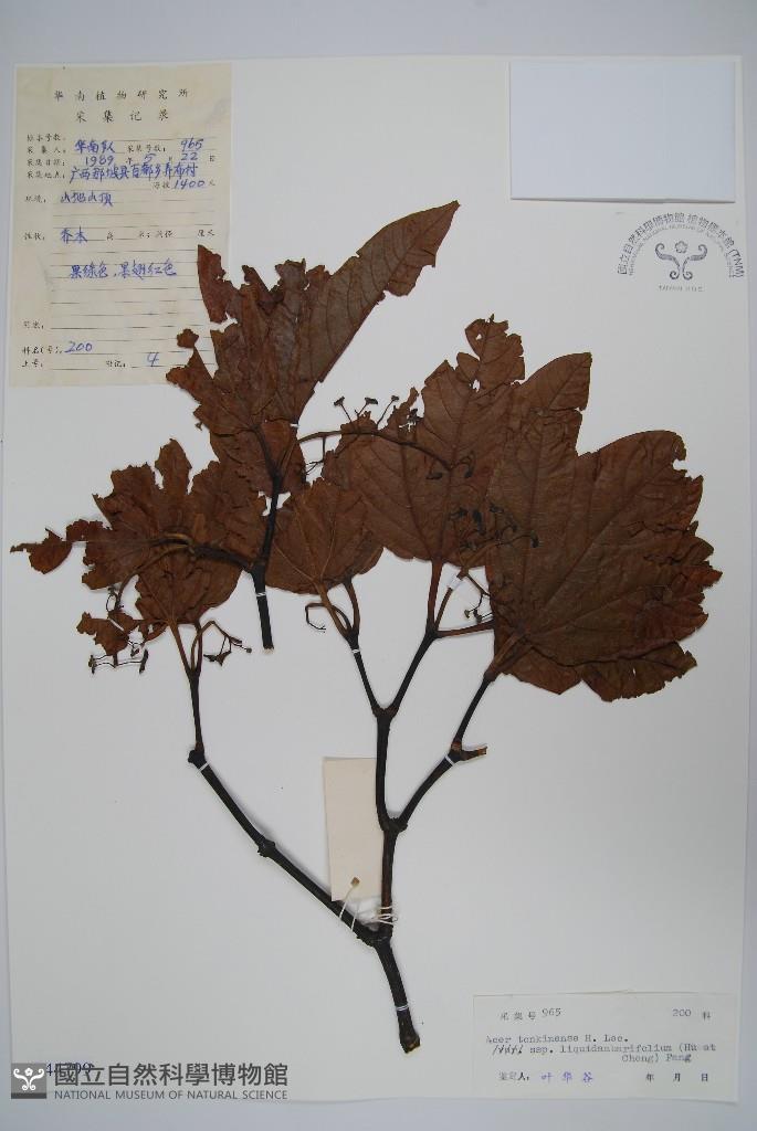 Scientific Name: Acer tonkinense H. Lec. subsp. liquidambarifolium (Hu & Cheng) Fang