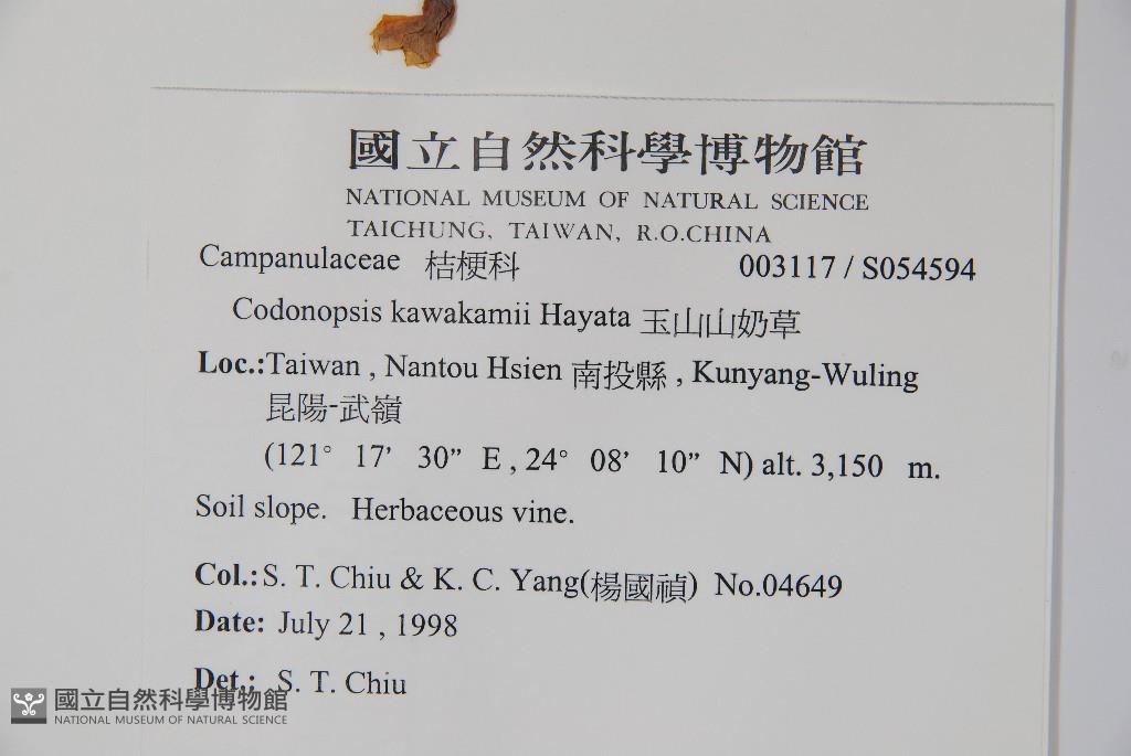 Scientific Name: Codonopsis kawakamii Hayata