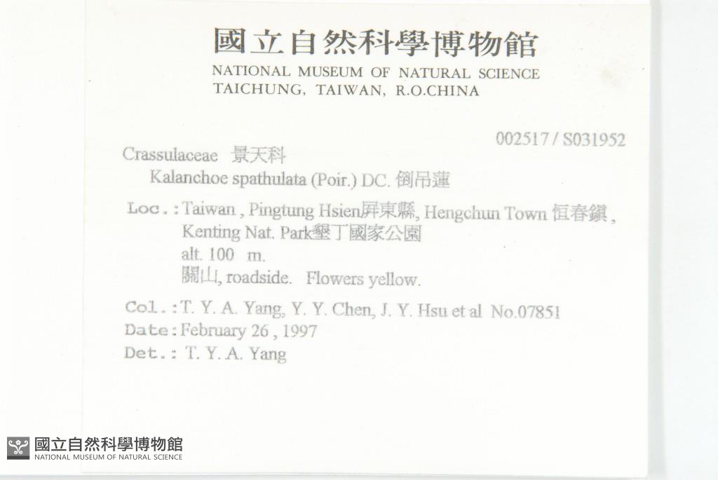 Scientific Name: Kalanchoe spathulata (Poir.) DC.
