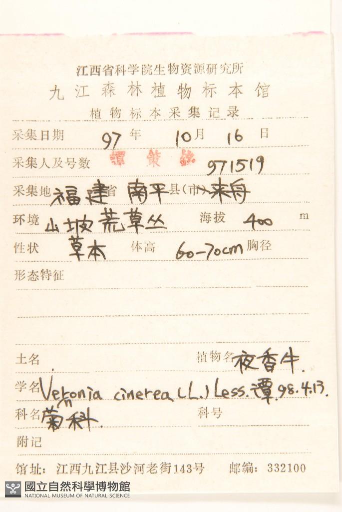Scientific Name: Vernonia cinerea (L.) Less.