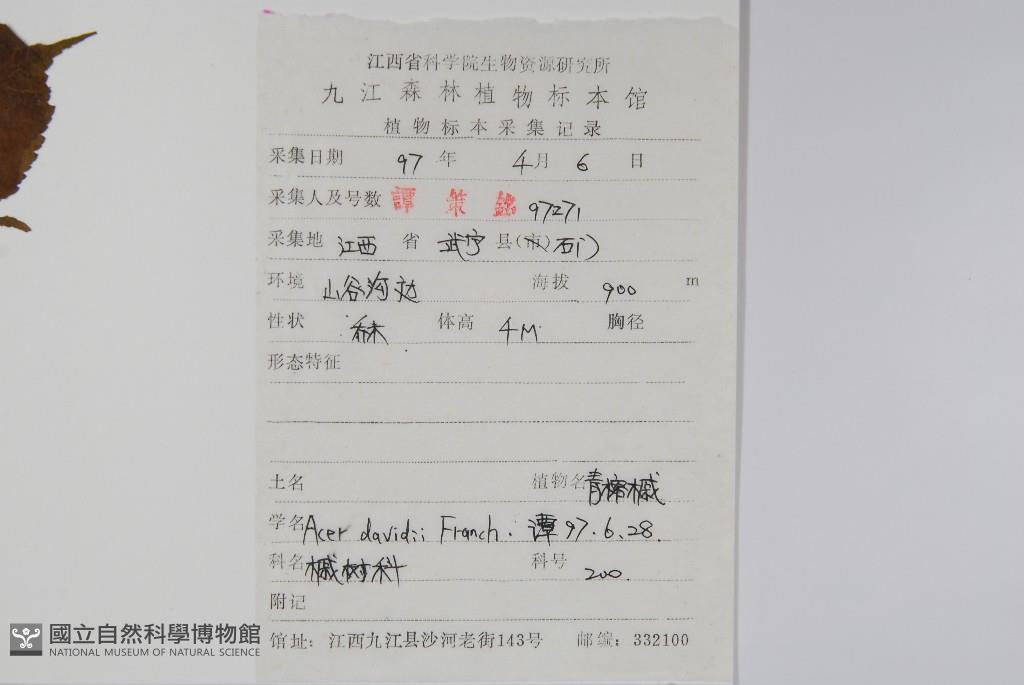 Scientific Name: Acer davidii Franch.
