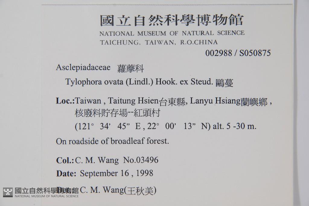 Scientific Name: Tylophora ovata (Lindl.) Hook. ex Steud.