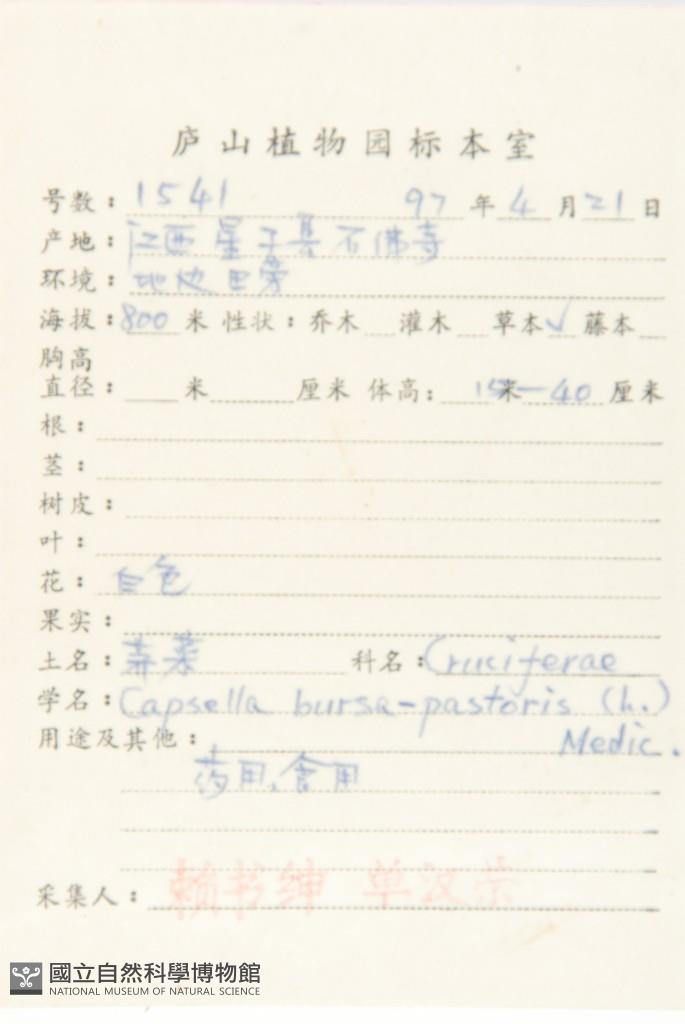 Collector:S. S. Lai & H. R. Shan