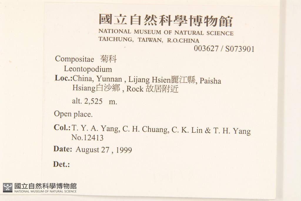 Collector:T. Y. Aleck Yang (楊宗愈), Chen-Hsing Chuang (莊振興), Chung-Kang Lin (林仲剛), & al.