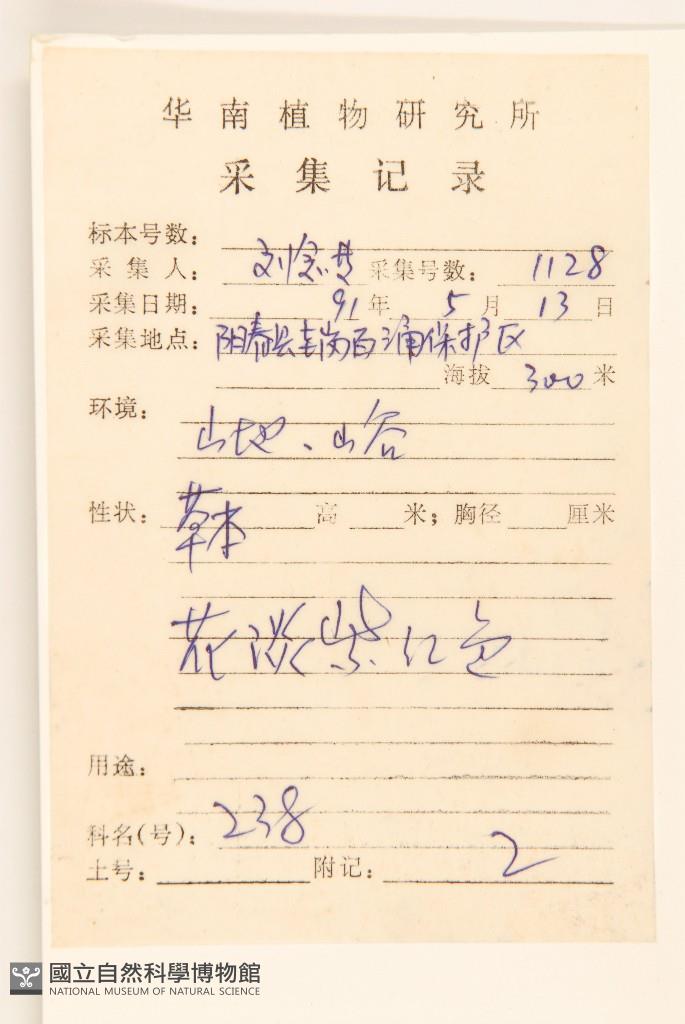 Collector's No.:劉?1128