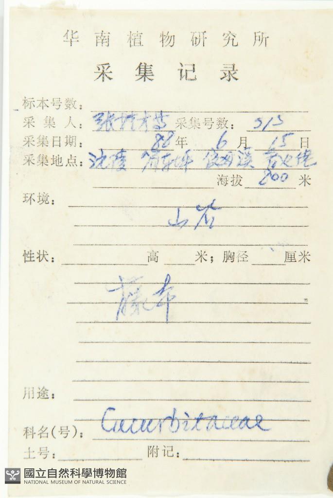 Collector's No.:張?0375