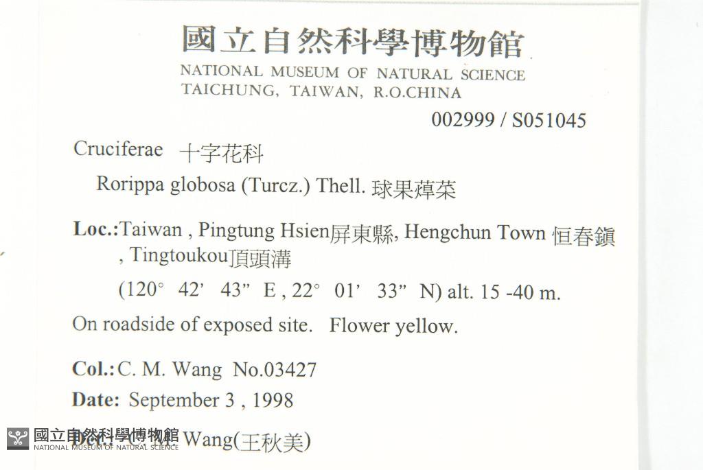Scientific Name: Rorippa globosa (Turcz.) Hayek
