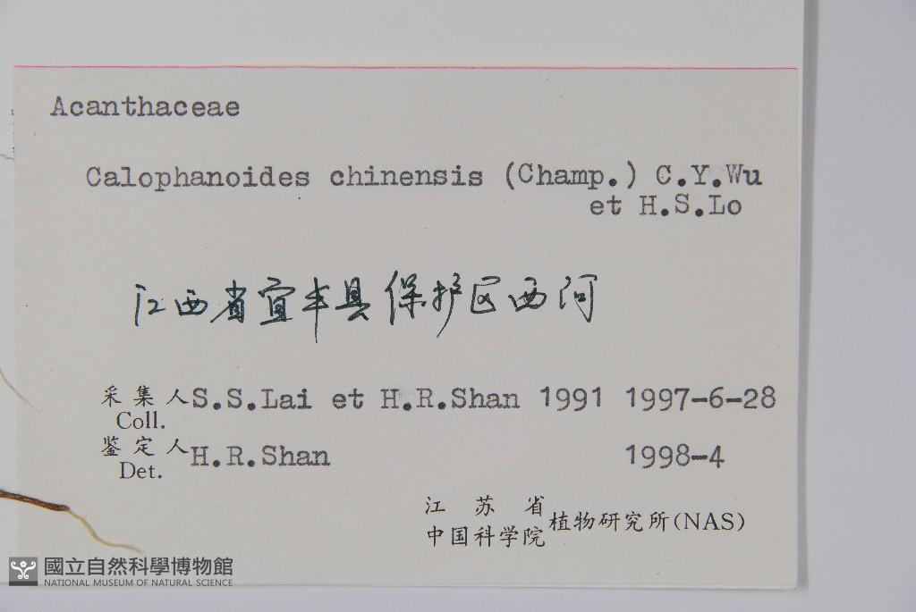 Scientific Name: Calophanoides chinensis (Champ.) C. Y. Wu & H. S. Lo