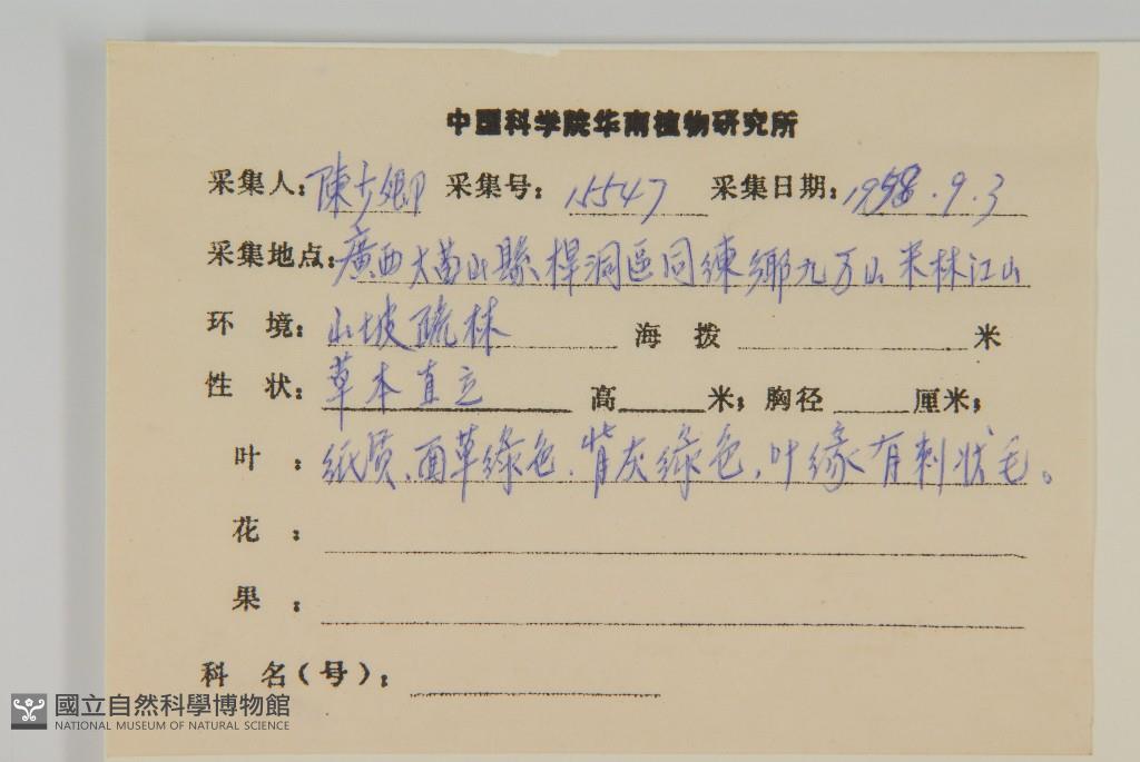 Collector's No.:陳?5547