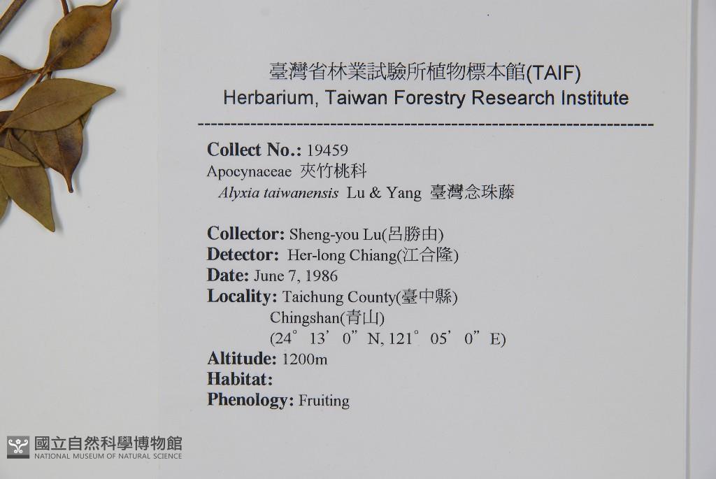 Scientific Name: Alyxia taiwanensis S. Y. Lu & Y. P. Yang