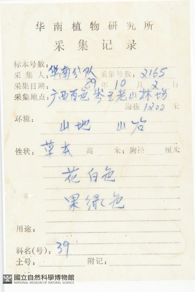 Collector's No.:華?2165