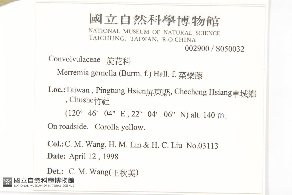 Collector:Chiu-Mei Wang (王秋美), Hui-Mei Lin (林慧美), & H. C. Liu (劉烘昌)