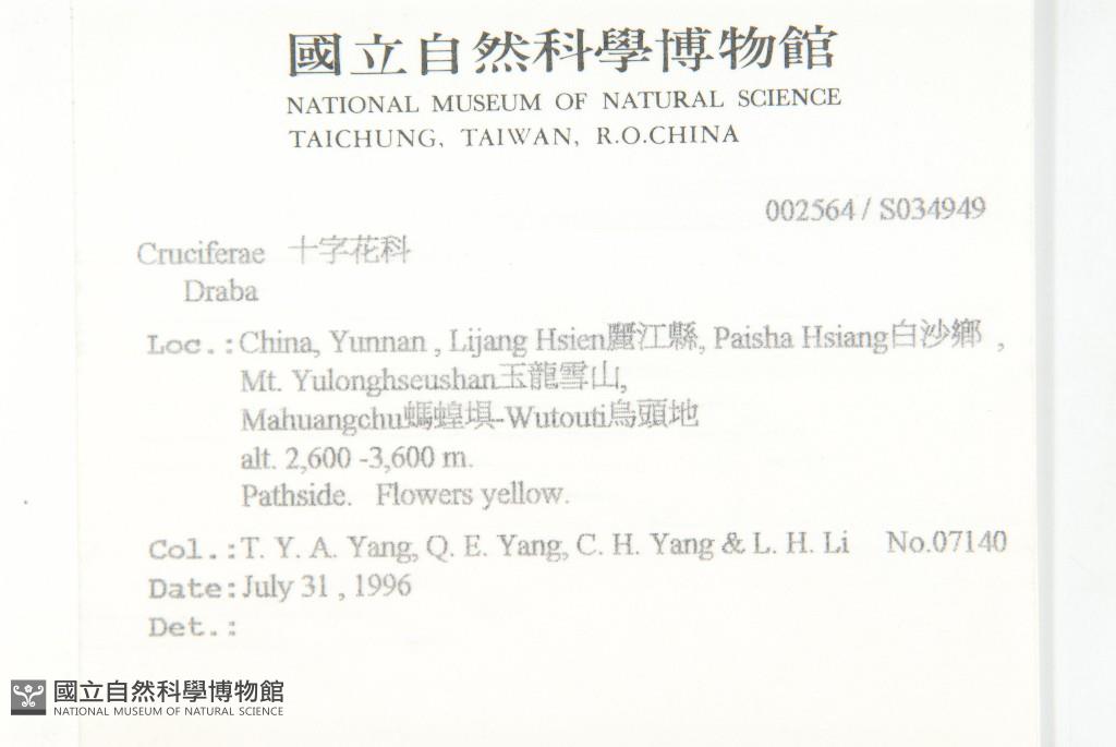 Collector:T. Y. A. Yang, Q. E. Yang, C. H. Yang & L. H. Li