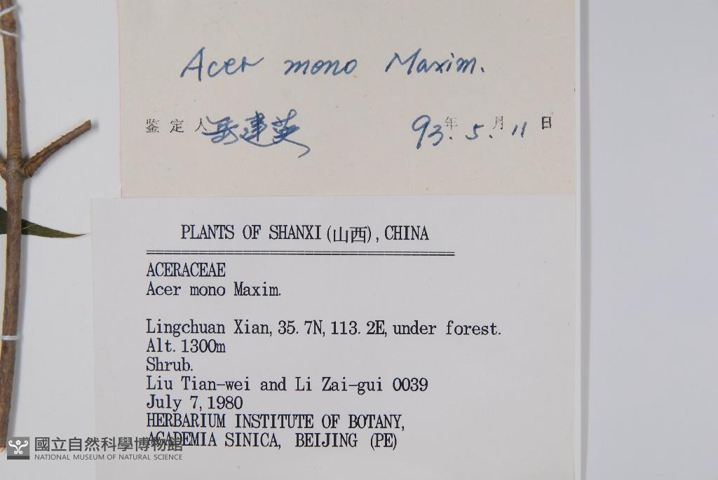 Scientific Name: Acer mono Maxim.