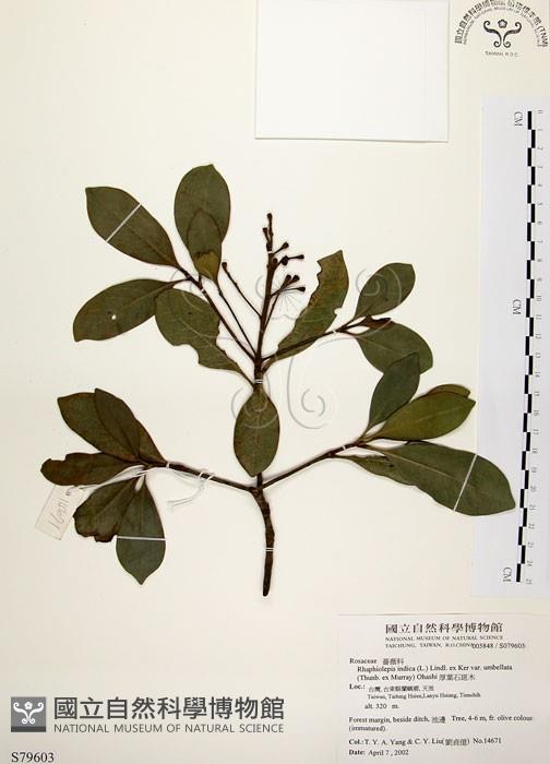 Scientific Name: Rhaphiolepis indica (L.) Lindl. ex Ker var. umbellata (Thunb. ex Murray) Ohashi