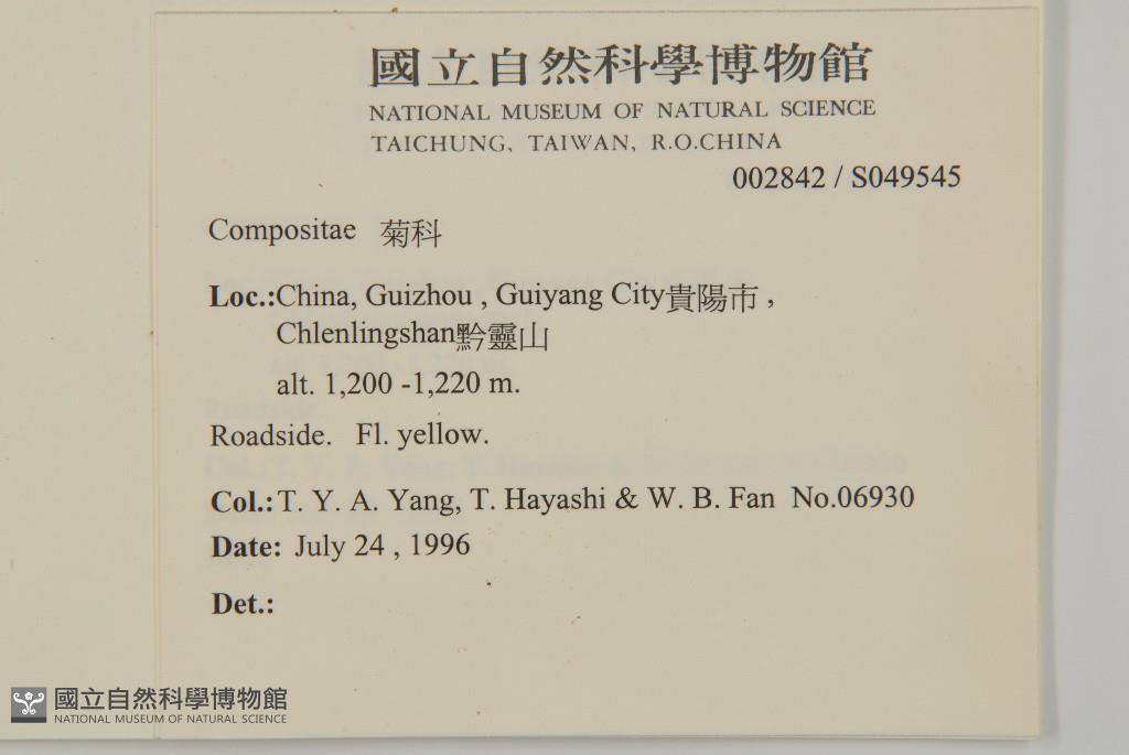 Collector:T. Y. A. Yang, W. B. Fan, T. Hayashi & C. Sun.