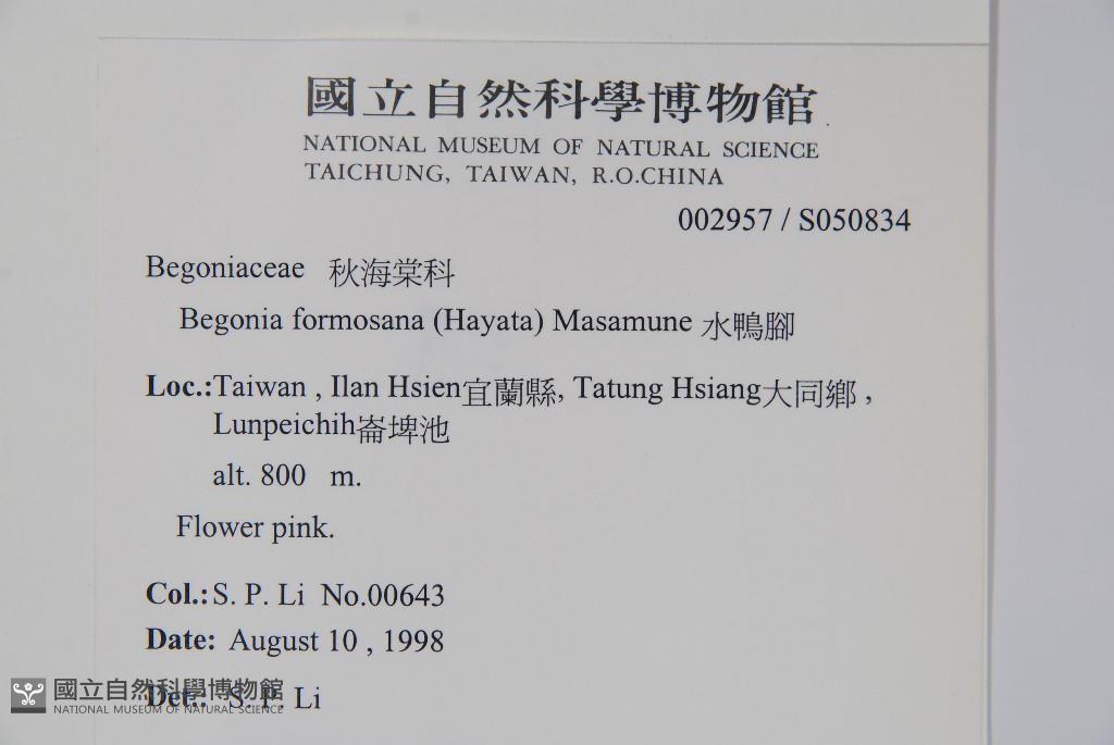 Scientific Name: Begonia formosana (Hayata) Masam.