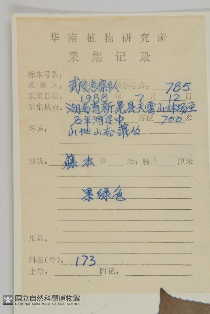 Collector's No.:武00785