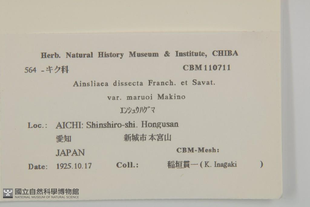 Scientific Name: Ainsliaea dissecta Franch. & Savat. var. maruoi Makino