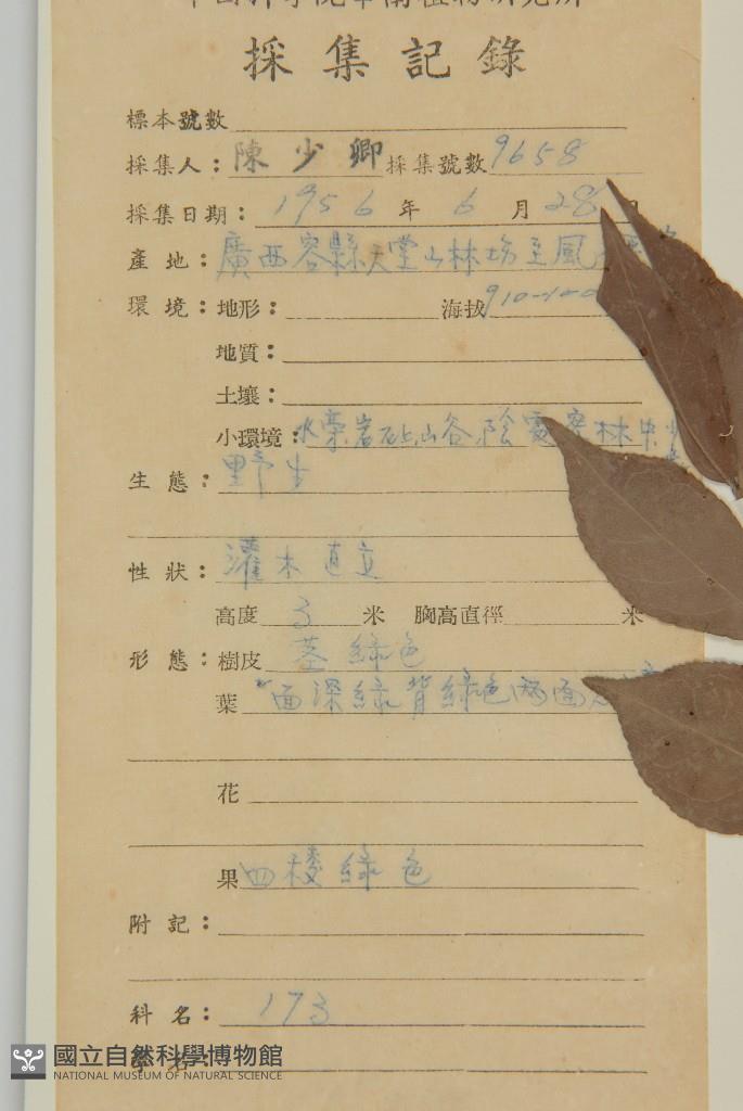 Collector's No.:陳?9658