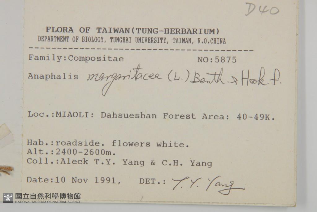 Locality:Taichung County, Hoping Township 40-49 Km of the Tahsuehshan Forest Road