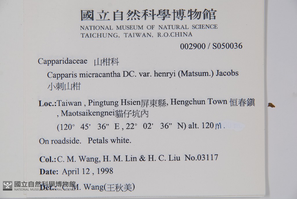 Collector:Chiu-Mei Wang (王秋美), Hui-Mei Lin (林慧美), & H. C. Liu (劉烘昌)