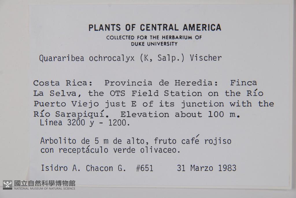 Scientific Name: Quararibea ochrocalyx (K. Salp.) Vischer