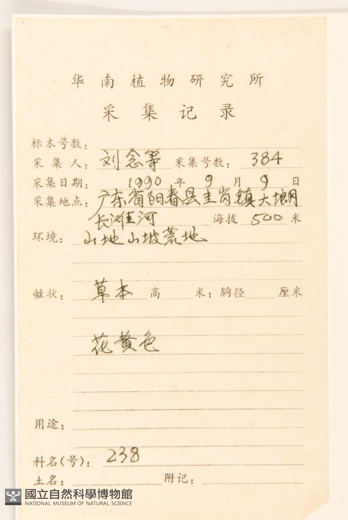 Collector's No.:劉?0384