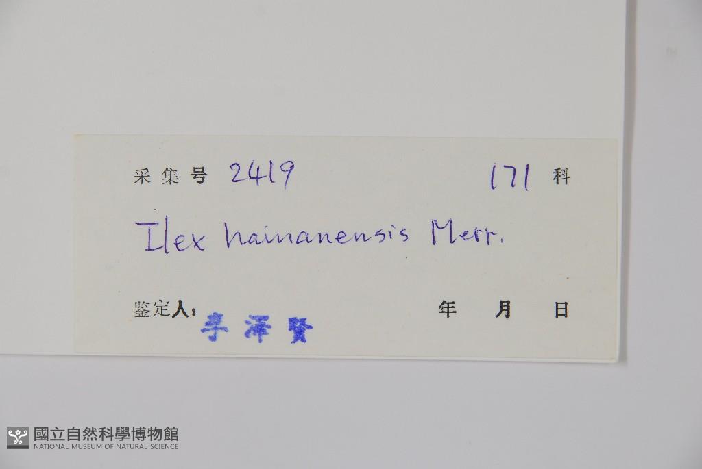 Scientific Name: Ilex hainanensis Merr.