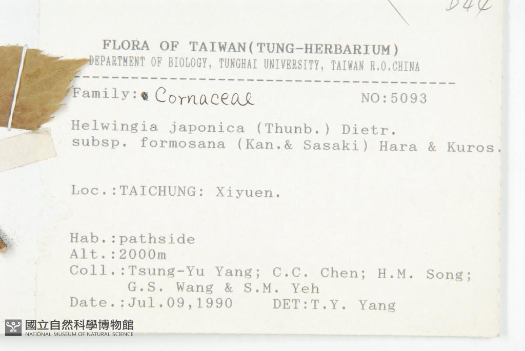 Scientific Name: Helwingia japonica (Thunb.) Dietr. subsp. formosana (Kanehira & Sasaki) Hara & Kurosawa